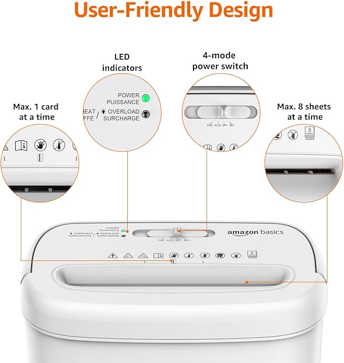 Amazon Basics Crosscut Paper and Credit Card Shredder for Security - 8-Sheet, Heavy Duty, White