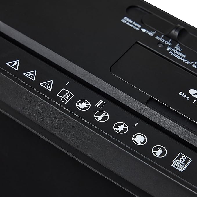 Amazon Basics 8-Sheet Strip Cut Paper, CD, and Credit Card Shredder, 3.4 gallons, Black