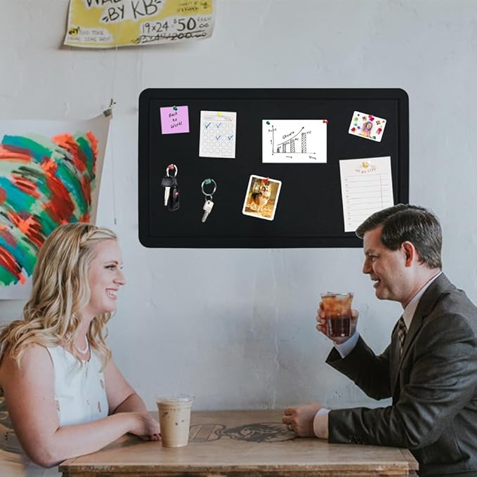 Vuzvuv Black 28"x16" Large Cork Board with 50 Push Pins & Sticky Notes, Self-Adhesive Bulletin Board for Wall, Felt Pin Board for Paste Notes, Photos, Schedules Offices Home