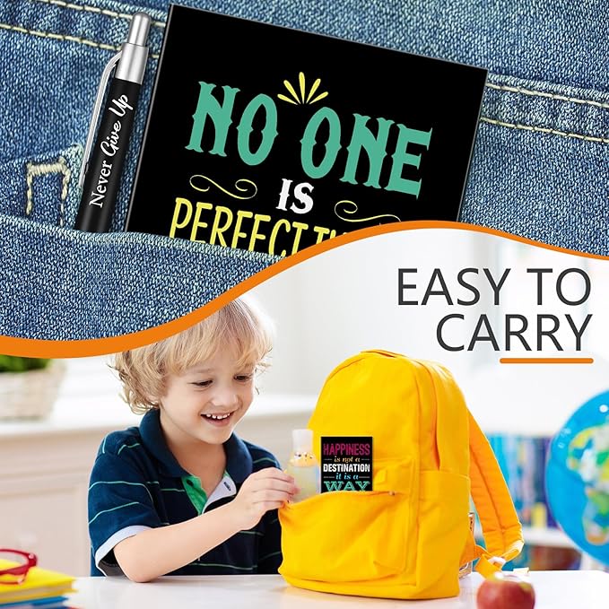 - Portable and Adorable: measuring approx. 3.35 x 4.72 inches/ 8.5 x 12 cm, our motivational notepads are lightweight and compact, small in size yet provides enough space to write your notes; The inspirational pens are about 5.51 inches/ 14 cm long, you can put the inspiring notebook and pen set in your handbag or carry them around, will not take up much space for you
