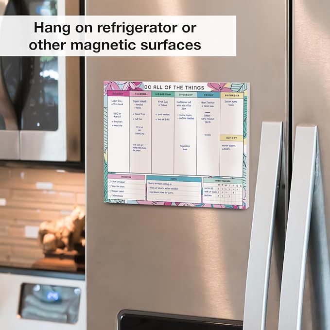 - MAGNETIC CONVENIENCE - Equipped with rear magnets, this To-Do List and Weekly Planning Pad effortlessly adheres to any magnetic surface such as refrigerators, magnetic boards, or metal cabinets. Keep your tasks prominently displayed for easy access and efficient task execution.