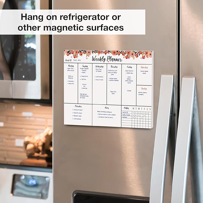 - MAGNETIC CONVENIENCE - Equipped with rear magnets, this To-Do List and Weekly Planning Pad effortlessly adheres to any magnetic surface such as refrigerators, magnetic boards, or metal cabinets. Keep your tasks prominently displayed for easy access and efficient task execution.