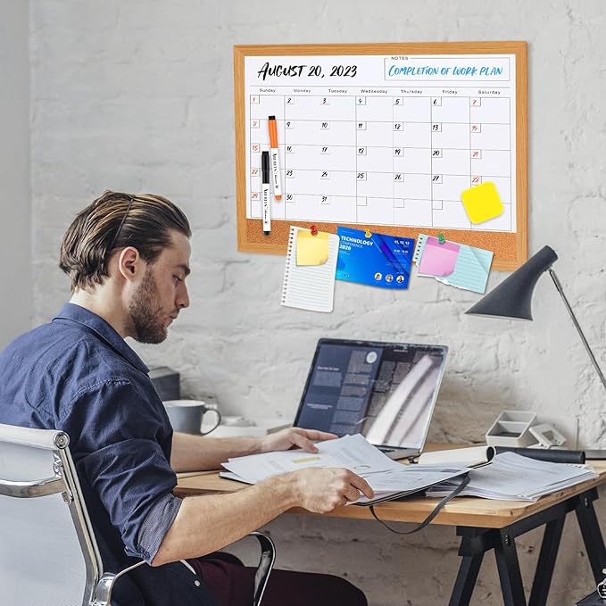 - 2 in 1 Calendar White Board & Cork Board: Our 17"x13" magnetic wall board is a best assistant to help you be a step ahead of your schedule. The white board for wall is printed with an undated monthly calendar grid, can be used as a monthly and weekly planner board, bulletin board, presentation board or memo board. Dry erase wall calendar includes cork strip across the bottom. Perfect for pinning notes, pictures, memos, curriculum schedules, to do lists.
