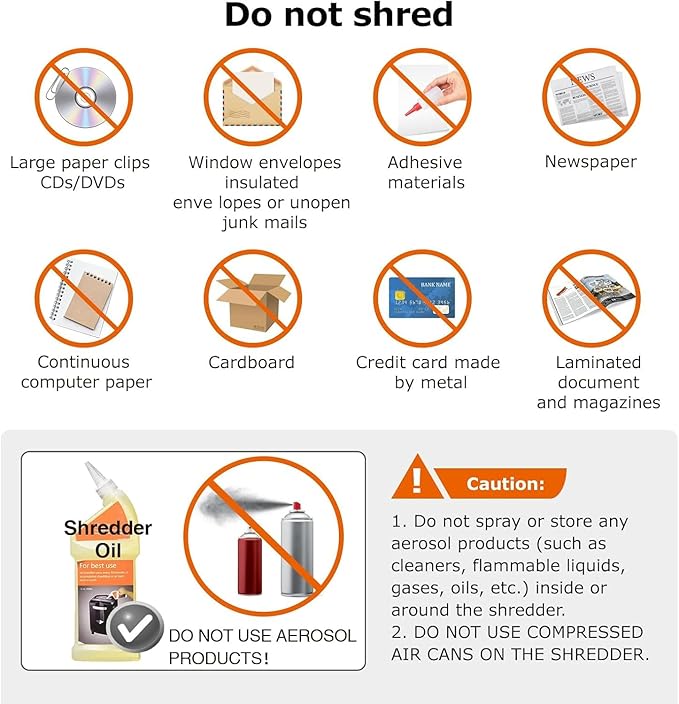 - 4 Minutes On and 40 Minutes Cool Down: This small shredder can continuously shred up to 180 sheets of paper (up to 8 sheets at a time) for 4 minutes. Overheating requires 40 minutes of cooling time