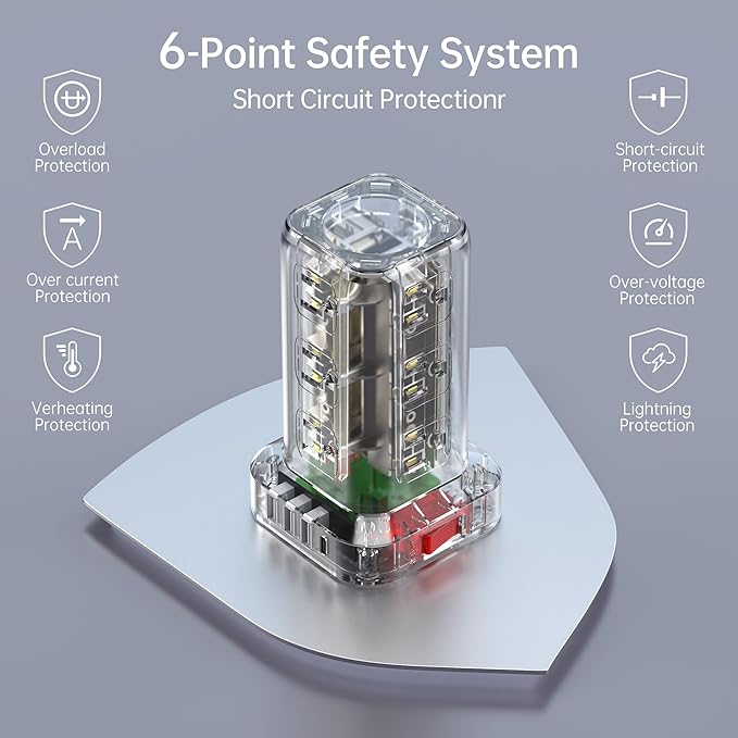 - 【All-Round Protected Surge Protector】 This power strip outlet is 8- SECURITY OVERLOAD PROTECTION. This surge protector is made of fireproof ABS plastic material and PVC. The power strip surge protector will automatically cut power to protect connected devices when a voltage surge is detected.江琴6月30日 17:41