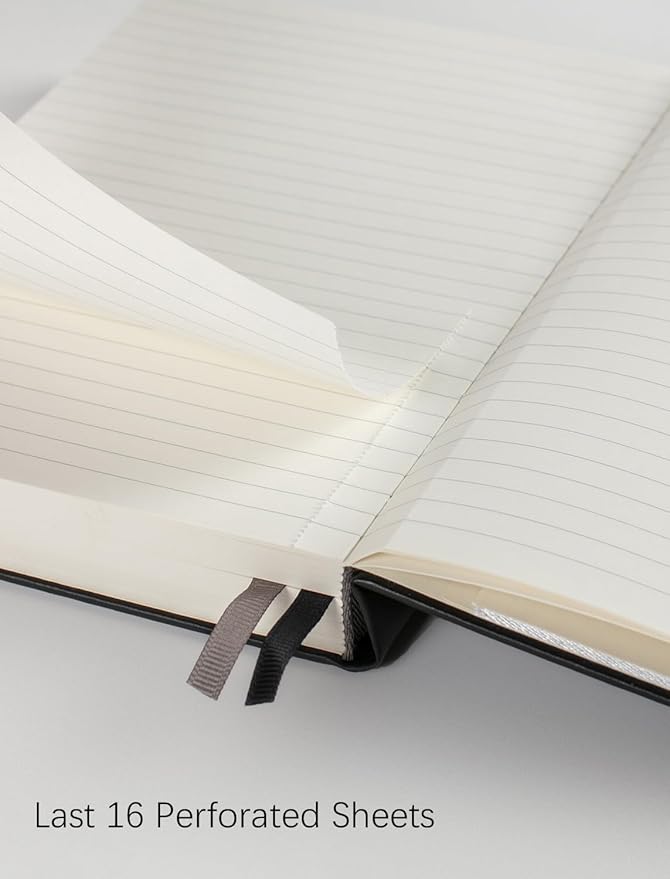 - Comfortable Writing: Light Ivory paper to protect your eyes. 100gsm weight paper is thicker than normal, suitable for fountain pens, ballpoint pens, highlighters to write on both sides of page without bleeding through, smearing or ghosting. Line spacing college ruled 7mm and 180°lay flat to give you comfortable writing experience.