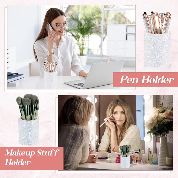 - Broadly Applicable: the, pencil holder can be utilized as a delicate decoration for your desk, office and home; It can be applied as a pen holder as well as a makeup brush holder to help you put away some small things; Bling pens are suitable for journaling, taking notes, signing, weddings, bridal shower and various parties, or writing down daily reminders and schedules