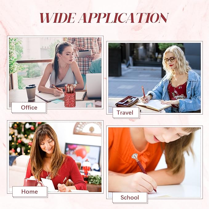 - Broadly Applicable: the, pencil holder can be utilized as a delicate decoration for your desk, office and home; It can be applied as a pen holder as well as a makeup brush holder to help you put away some small things; Bling pens are suitable for journaling, taking notes, signing, weddings, bridal shower and various parties, or writing down daily reminders and schedules