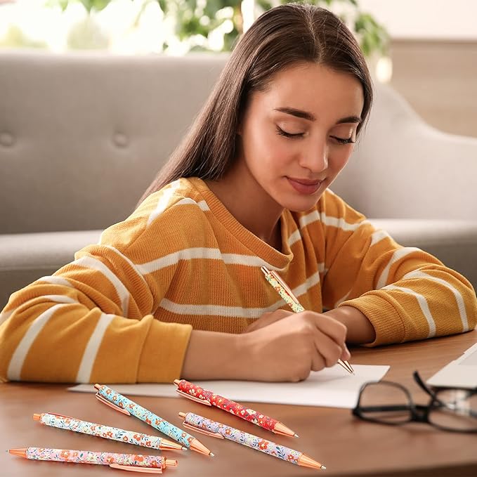 - Retro Floral Design: these glitter ballpoint pens are printed with pastoral floral styles, designed in various colors, which are yellow, red, white, pink, blue, purple, fresh and chic, reminding you to keep a positive attitude, and having a good mood in learning, working and your daily life