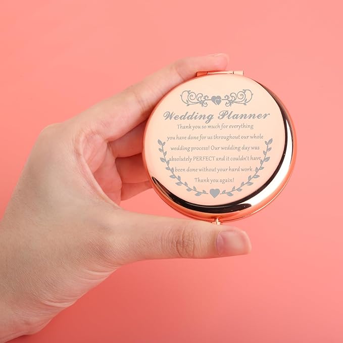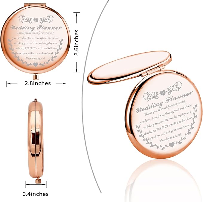 - ❤Perfect Gifts❤The Travel Mirror Engraved With “Thank you so much for everything you have done for us throughout our whole wedding process! Our wedding day was absolutely PERFECT and it couldn't have been done without your hard work . Thank you again!” It will bring back happy memories when she uses it every time.
