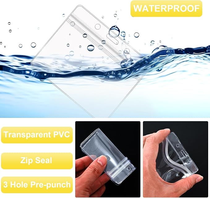 - Simple and useful: the ID badge lanyard is designed with a resealable zip lock that is easy to open and close, clear plastic horizontal name holder protects important paper badges or cards and keep them clean and dry, the lanyard can keep name card secure