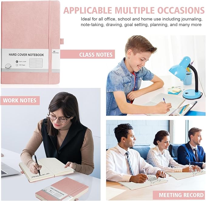 - Perfect Gift:9.8"X6.9", Larger size allows more content to be recorded..Great Use-Ideal for office,school and home use,perfect as a personal writing journal,travel journals,business notebooks,college course notebooks,daily diary,bullet journaling and more.