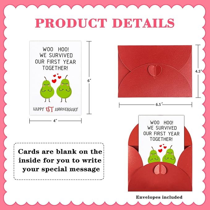 - 【Funny One Year Anniversary Day Cards】: A 1st anniversary greeting card for your boyfriend or girlfriend is the perfect way to show him how much you care.The funny 1st year anniversary card is a great anniversary day gifts for him her boyfriend girlfriend husband wife fiance men women,A funny anniversary gifts that will make your partner feel loved and appreciated.