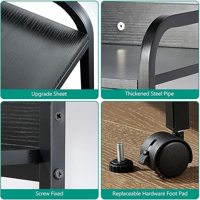 - 【Sturdy Quality】The 4-layer printer stand is made of thick medium-density fiberboard, and the stand is made of sturdy steel pipes, which are tested and can store a large number of heavy-duty machines for a long time, with excellent load-bearing capacity. High-quality particle board has a water-resistant and wear-resistant surface. When cleaning, you only need to wipe it gently with a wet wipe.