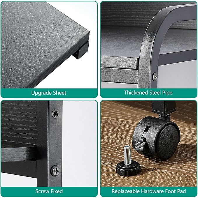 - 【Durable Quality】Each shelf of this printer stand is supported by a sturdy steel tube frame underneath, with a sturdy structure and excellent load-bearing capacity. Each panel holds 120 pounds, the high-quality particle board has a waterproof and abrasion-resistant surface, and the powder-coated steel tube frame is durable, making this stand a reliable piece of furniture that will serve you for years to come.