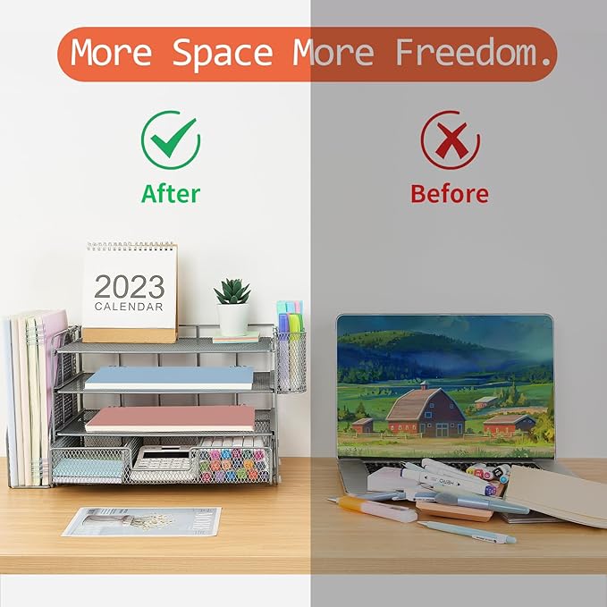 - 🎁【Premium Quality】Crafted from high-quality industrial-strength steel wire mesh and reinforced with a solid steel frame, our desk file organizer is built to last. You can trust that it will withstand the test of time and keep your workspace organized for years to come