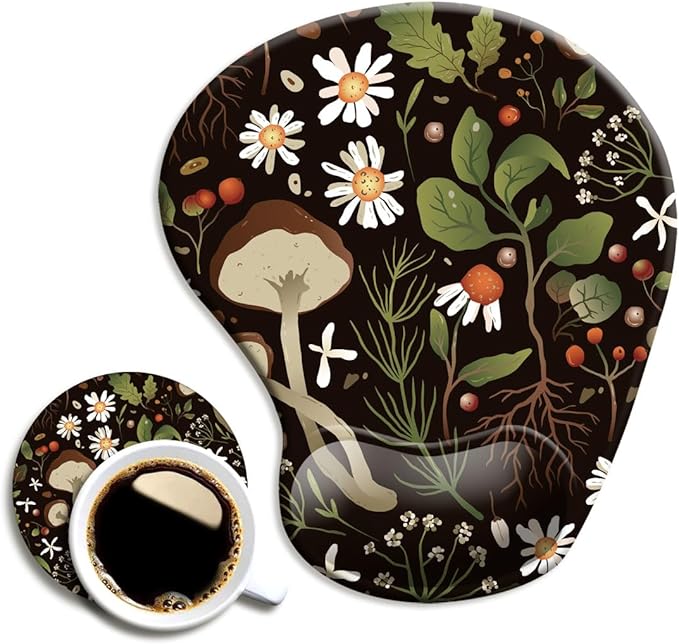 Ergonomic Mouse Pad with Wrist Support and Coaster,Mouse Pads with Non-Slip PU Base for Home Office Working Studying Easy Typing & Pain Relief Daisy