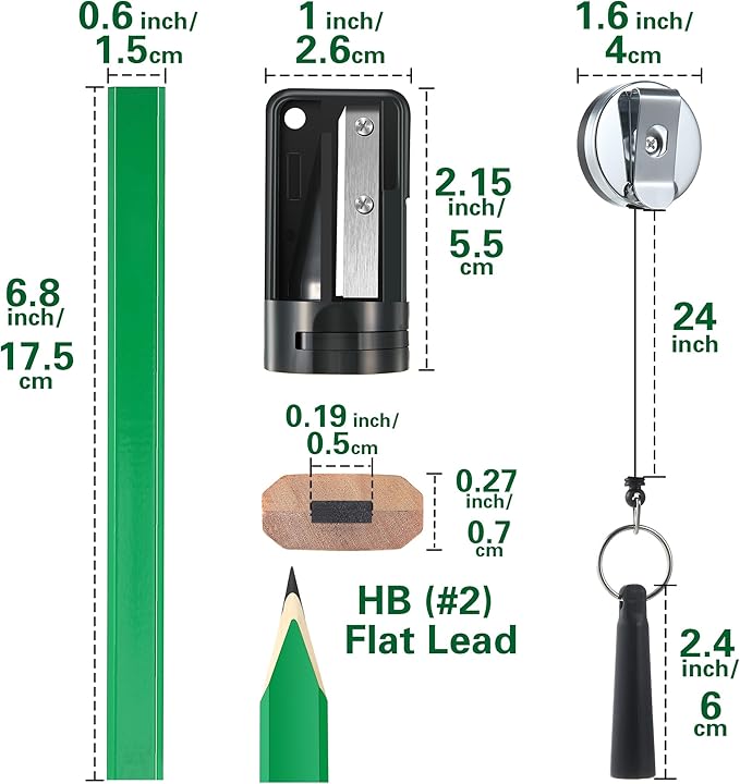 - Package Include: there are 12 pieces of wood flat carpenter HB pencils, 1 retractable pencil holder and 1 manual pencil sharpener in your package, 14 pieces in total; The carpenter kit comprehensively provides the marking tools you need when doing woodwork