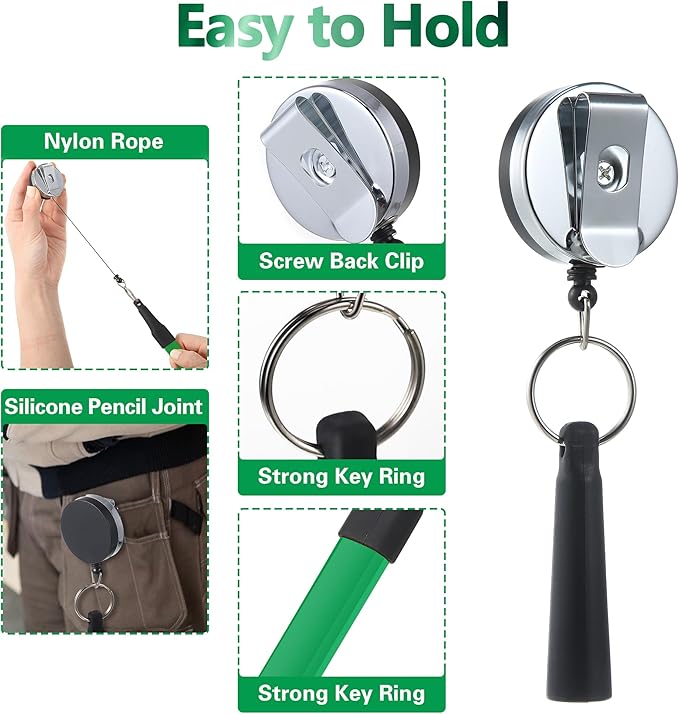 - Retractable Pen Holder: this pencil holder is designed with a silicone pen cover, just wear the metal clip on your apron or belt loop, and insert your marker into the rubber joint; The pencil holder is connected with 24 inch retractable cord, convenient to mark in the messy woodworking workplace and improve your work efficiency