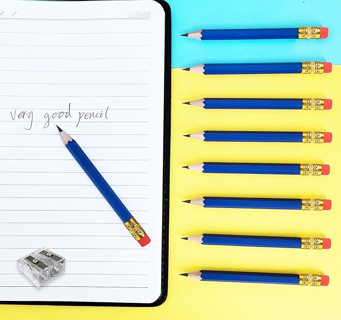 Adhere 25pcs Golf Pencils with Eraser Pre sharpened Hexagon half Wooden Pencils Graphite 2B for Golf Event Scoring,Classroom,Wedding,Company Meetings,Pew, Pocket (Blue)