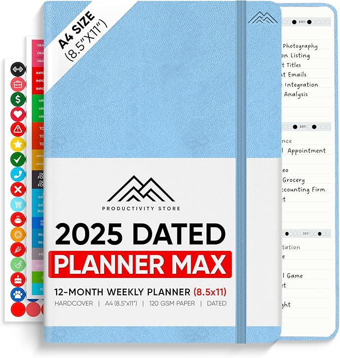 PRODUCTIVITY STORE Pro Max - Dated, 2025 Planner, 8.5" x 11" - The #1 Productivity Planner to Achieve Your 2025 Goals - Planner 2025-2026 - Blue - A4