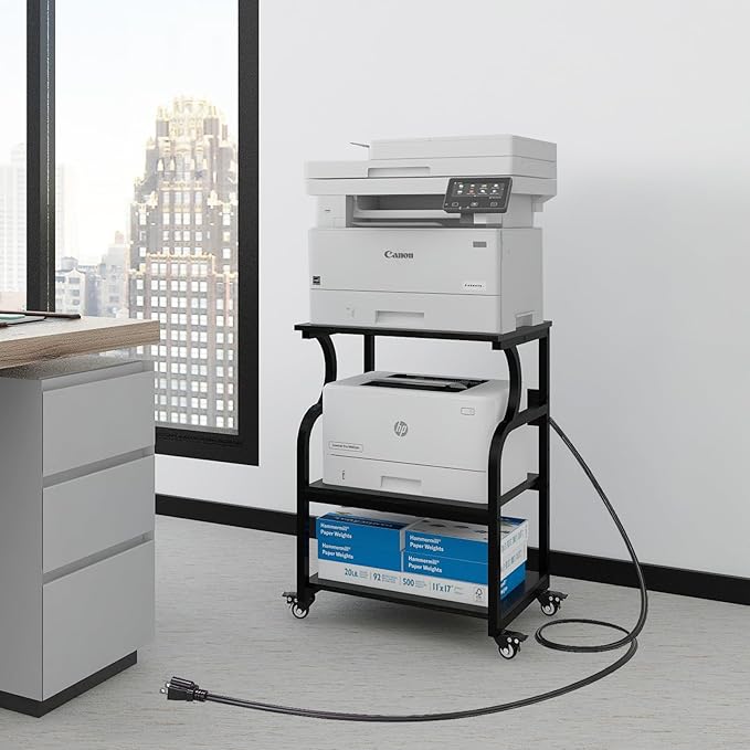 - 【Provide Casters & Pads】The 3-tier printer stand with storage adopts universal wheel design, which is light to push and pull, we use industrial grade firm casters ,each of them is lockable to provide high stability when need to keep the print cart in position. Besides,you will also get 4 foot pads as spare parts.