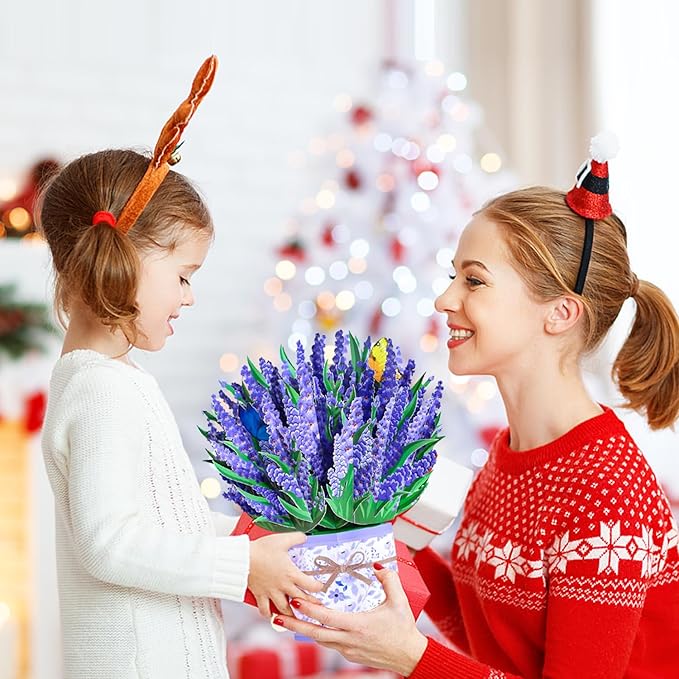 - Creat A Moment of Surprise: With the 3D lavender bouquet design, when open it, pop up a bunch of beautiful paper flowers. The receipiant will be touched and delighted by this card. This flower greeting card is exquisite and unique, perfect for your loved ones. This pop up flower card is more than just a present, in fact this piece of art will be long lasting memories worth cherishing.