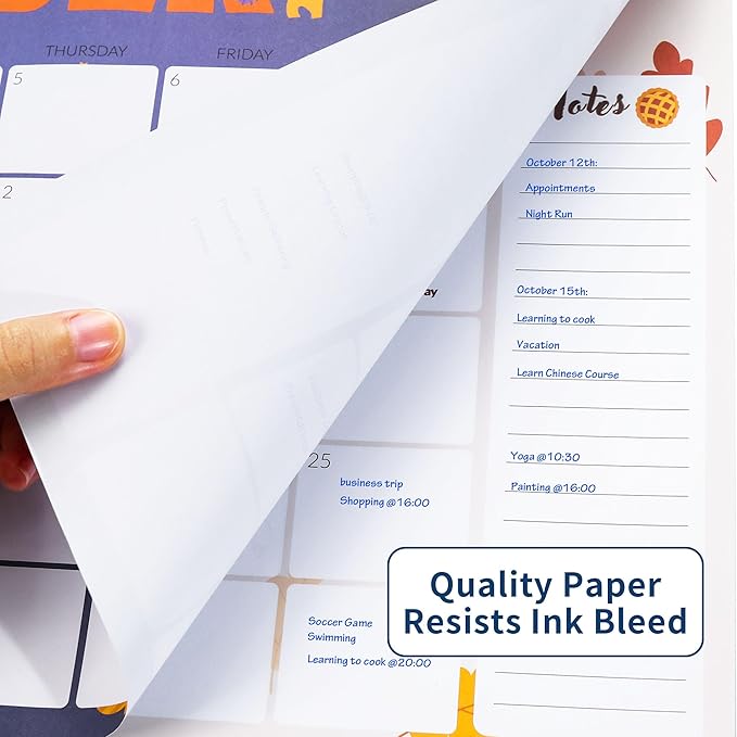 - Premium Quality: Our wall calendar measures 17 inches wide by 12 inches high, an ideal size for daily use. For quick date checking and future planning. Plus, the paper is designed to prevent ink bleed-through and feathering, keeping your pages clean