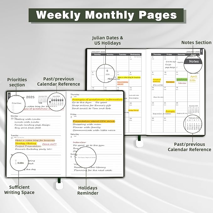 - 【WORRY-FREE GUARANTEE】Focus on providing planner with excellent production and professional design. We provide 30-day quality assurance. If you're having ANY quality issues about your weekly monthly planner 2025, please contact us via amazon at first time.