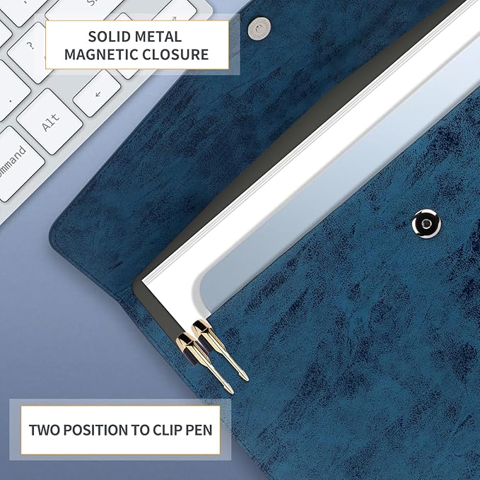 Toplive Document File Folder, Waterproof Thin PU Leather A4 Envelope Folder File Document Organizer Storage Case, Filing Envelope Folder with Magnetic Closure, Ash Blue