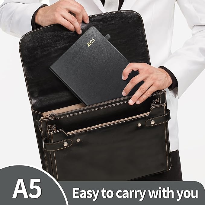 SUNEE 2025 Weekly & Monthly Hardcover Planner 5.5" x 8.3" - 12 Month (January 2025 - December 2025), Small Hardcover Planner, Pocket, Notes, 100 GSM Paper, Black