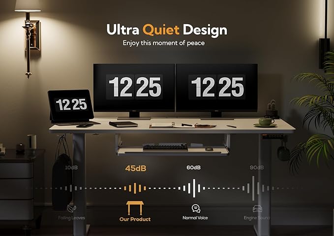 - Ultra-Quiet and Powerful Motor: Claiks custom-designed motors provide robust power for the height-adjustable standing desks. With noise levels as low as 45 decibels, you can enjoy smooth and quiet adjustments, enhancing your workspace without any disruptions