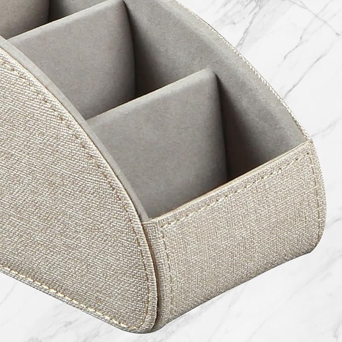 - MULTI-FUNCTIONAL: 5 compartments desk organizer to hold universal remote controllers for air conditioner, cable box, Roku, Apple TV, Amazon Fire TV, soundbars, mobile phone, small electronic media accessories, cosmetic, brush pen and glasses, pens/pencil and other office stationery