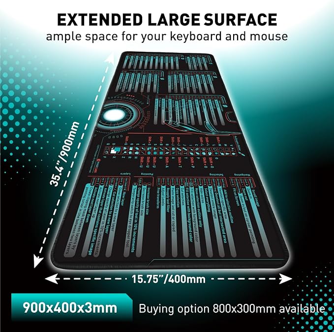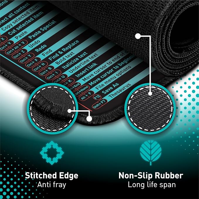 Windows, Office, Excel, Adobe Photoshop Shortcut Keys Extended Large Mouse Pad | Gaming Desk Mat for PC. Stitched Edge Non-Slip Base Mousepad, Keyboard Mat