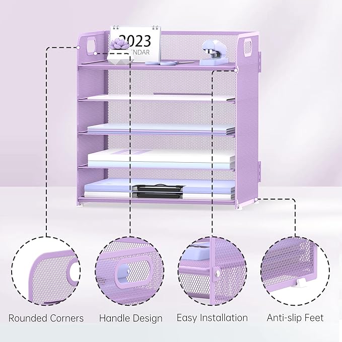 Supeasy 5 Trays Paper Organizer Letter Tray with Handle-Mesh Desk File Organizer, Paper Sorter Desk Organizer for Office, Home or School