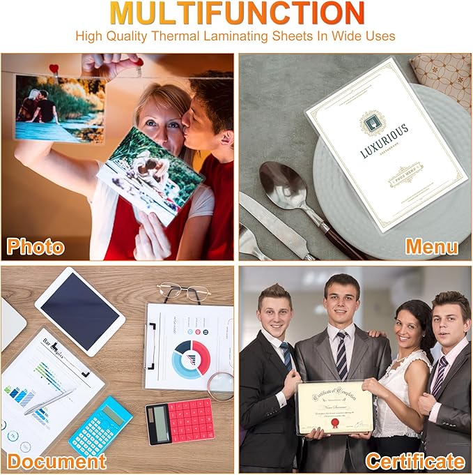 - Application:Perfect for protecting certificates,signs,photos,awards,calendars,kids artworks.It can seal and protect your documents it can be used in classroom, home and office.Compatible with all thermal laminator machine brands