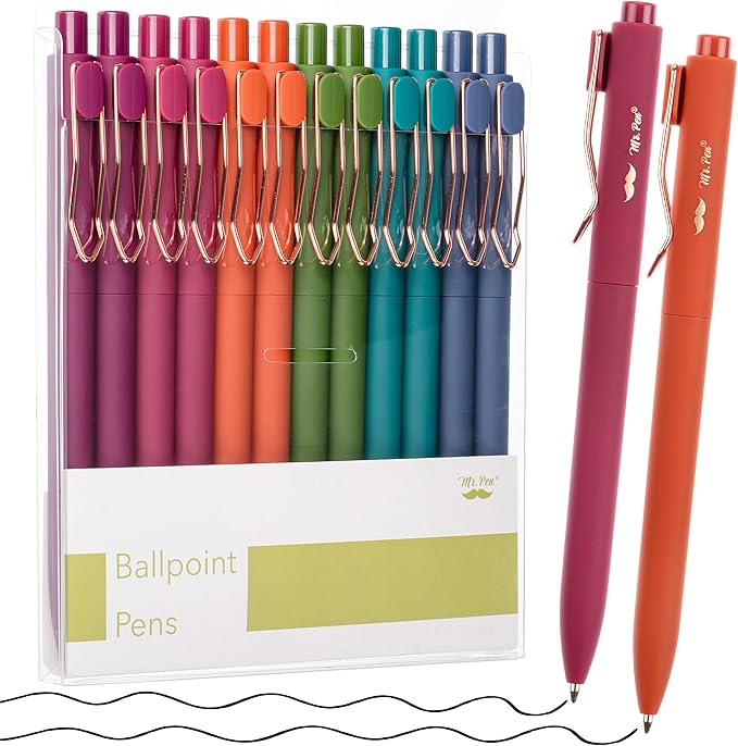 Mr. Pen- Ballpoint Pens, 12 Pack, Vintage Color Barrels, Black Ink, Cute Ballpoint Pens Black Ink, Cute Pens for Journaling, Aesthetic Pens, Ball Point Pens Black, Pens Ballpoint Smooth Writing Pens