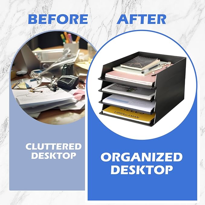 - Sophisticated Color: durability aside, this paper tray organizer comes in an elegant black color; The classy hue adds a touch of sophistication to its overall aesthetic appeal, making it an ideal accessory for your workspace, whether at home, office or school