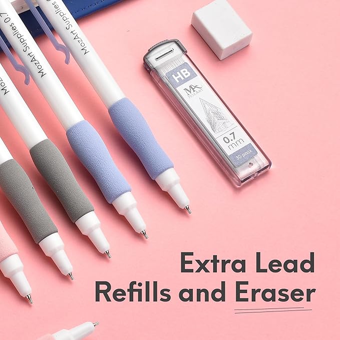 MozArt Cute Mechanical Pencil Set 0.7mm, 16PCS with 30 HB Lead Refills Drafting, Art, Drawing Supplies, Aesthetic Pastel Mechanical Pencils for Girls Writing
