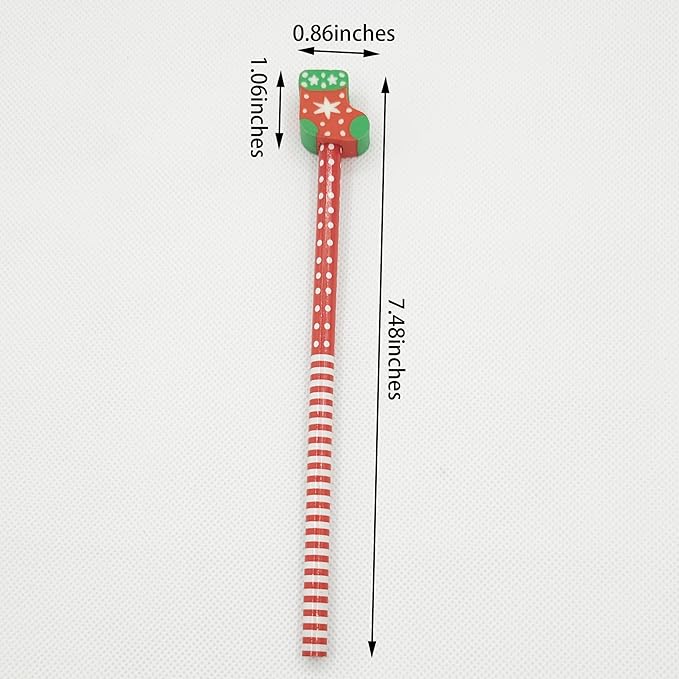 - 1.You will get 27 colored striped cylindrical pencils with chrismas erasers, each about 7.5 inches long. Among them, the pencil is made of natural wood, and the eraser is made of safe, non- toxic and tasteless environmentally friendly rubber.