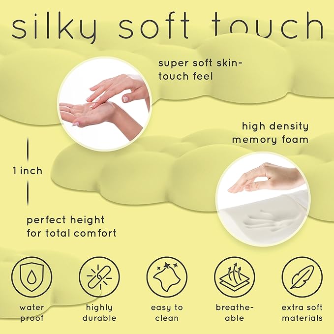 Qloud Cloud Wrist Rest Keyboard Wrist Rest for Computer Keyboard Pad, Cloud Keyboard Wrist Rest, Wrist Pad for Keyboard, Memory Foam, Non Slip Base, Comes with Mouse Pad - Yellow