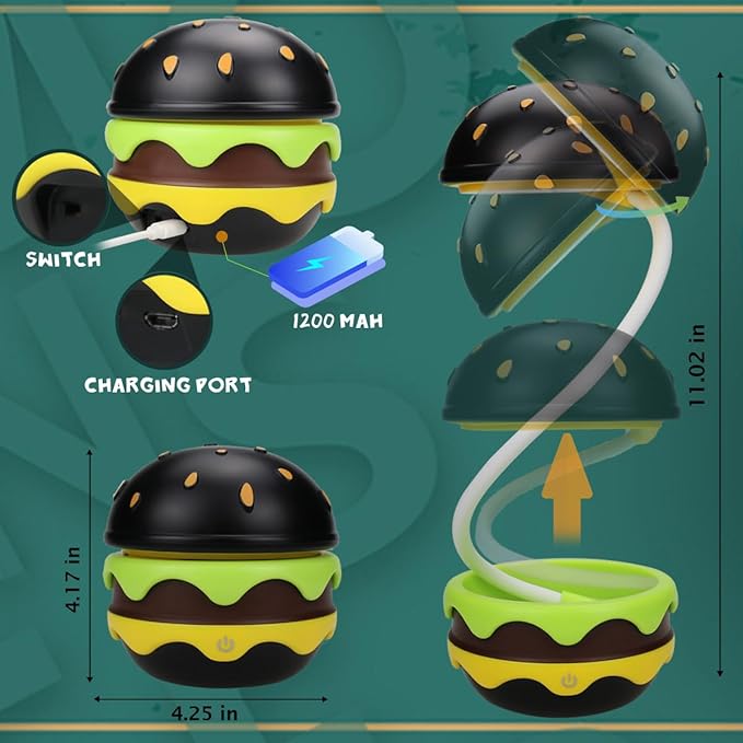 - Funnest Hamburger Lamp & Cute Gifts for Kids: "Why are you charging a “hamburger“ on your desk?" Wow! What a novelty desk lamp it is! Cute and kawaii hamburger shaped desk lamp designed specifically for kids, which would be a heart catcher for girls. This decor lamp small is also the best choice for kawaii desk accessories, cutest bedside accessories and boys room decor. Ideal Birthday/Christmas Day/New Years Day/Children Day Gift to surprise your kids boys girls