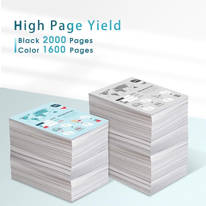 - HIGH PAGE YIELD: HP962xl/962 ink cartridges combo pack provide up to 2000 pages for each black 962XL Ink Cartridge; 1600 pages for each color 962XL ink cartridges (cyan,magenta,yello) at 5% coverage on A4 paper.