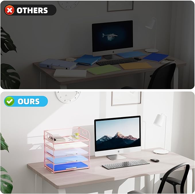 - 【PREMIUM QUALITY】The mesh desktop file organizer is made of lightweight durable metal mesh and reinforced with a solid steel frame that makes it have long-lasting strength and reliable performance.