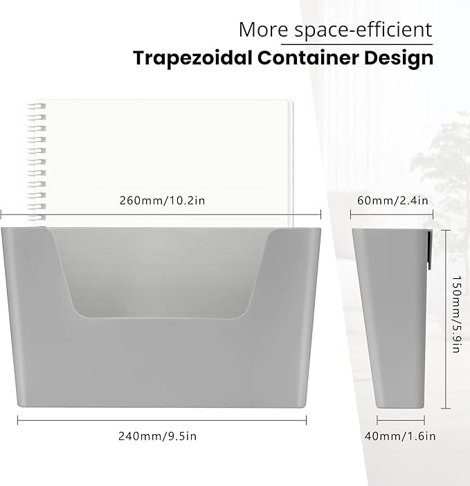 - MULTIFUNCTIONAL WALL FILE ORGANIZER - Can be installed on home office wall to organize envelopes, papers, scissors, mails, documents, letters, bills, living room magazines, bedside items like phones, kindles, tablet, toddler books. Put kitchen refrigerator to hold cook books, weekly menu, coupons/gift cards.