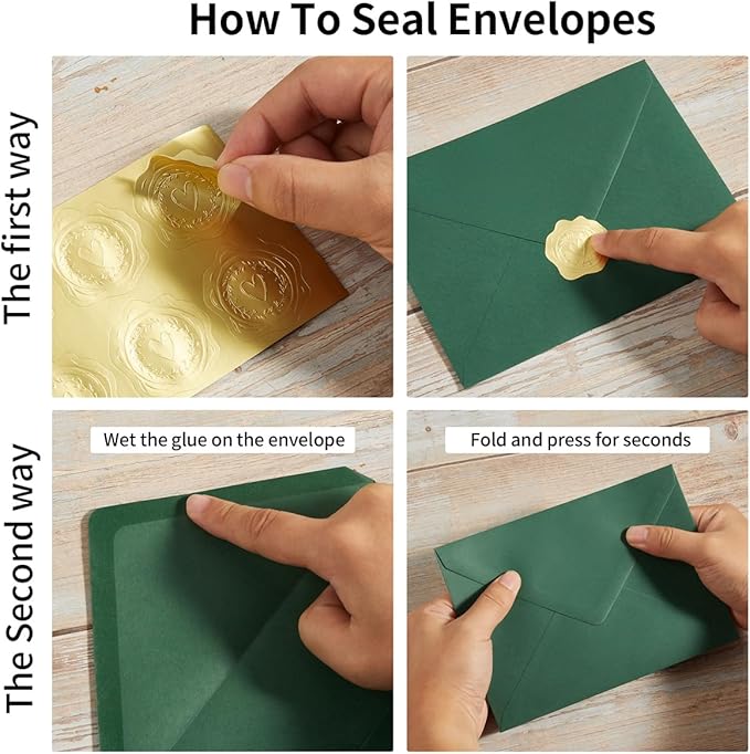 - Large Quantity: You will get 50 packs of dark green envelopes, 50 sage green 5x7 folded thick cards and 50 pieces of gold stickers, which is enough for you to use in various occasions or share with your friends or family.