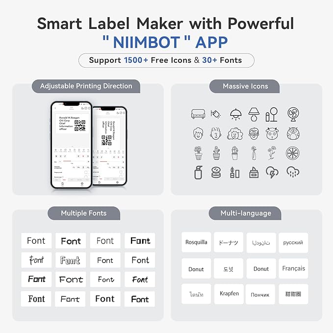- 【Easy TO Use】It is incompatible with iPad. B1 Bluetooth label printer supports iOS & Android and PC. The app included more than support 30+ fonts/Languages, 100+ borders, and 1500+ symbols. Just need to download the free app, choosing and connecting printer model B1 from NIIMBOT APP, Then Enjoy Printing