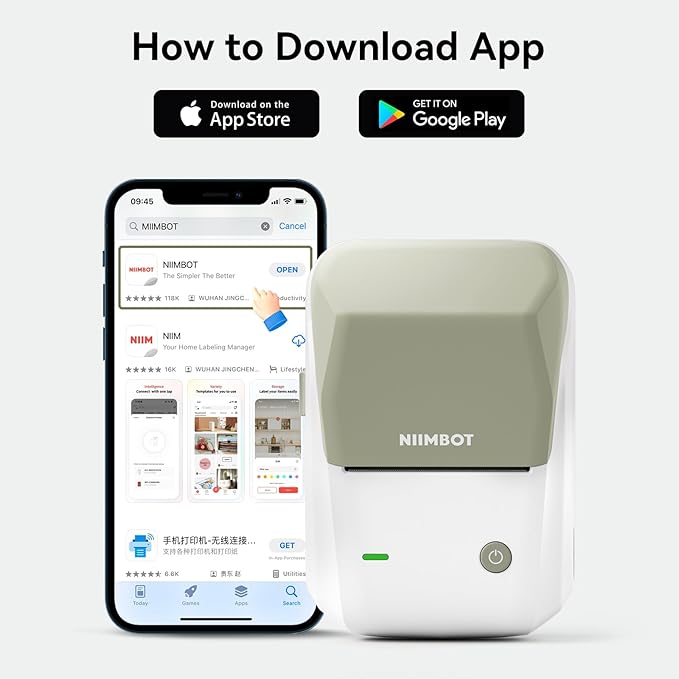 • 【Easy TO Use】It is incompatible with iPad. B1 Bluetooth label printer supports iOS & Android and PC. The app included more than support 30+ fonts/Languages, 100+ borders, and 1500+ symbols. Just need to download the free app, choosing and connecting printer model B1 from NIIMBOT APP, Then Enjoy Printing