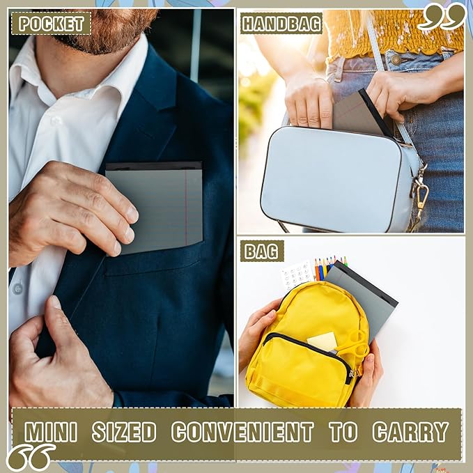 - Sufficient Quantity: grab incredible value with our comprehensive note pad pack featuring 24 small legal pads, each with 30 sheets; Measuring about 4 x 6 inches/ 10.16 x 15.24 cm, they're compact, ideal for on the go note taking or use in small workspaces; These note pads are designed to efficiently cater to your daily work and study requirements
