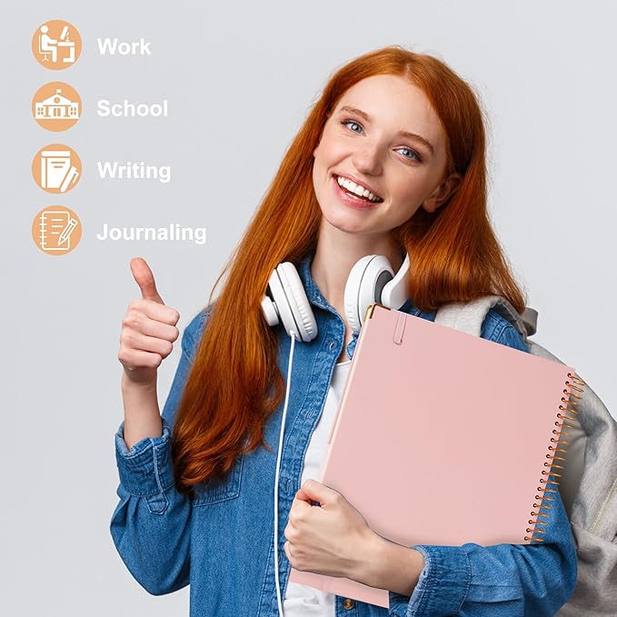 - Hardcover Notebook with Corner Protectors: The pink spiral notebook has a durable and water-resistant hard cover. It can easily be held in your hand for writing without table. And the gold corner protectors add a nice touch and keep from getting scuffed. Hold up well to frequent transfers in and out of bags, briefcases, and cars. Super sturdy for work and school use!